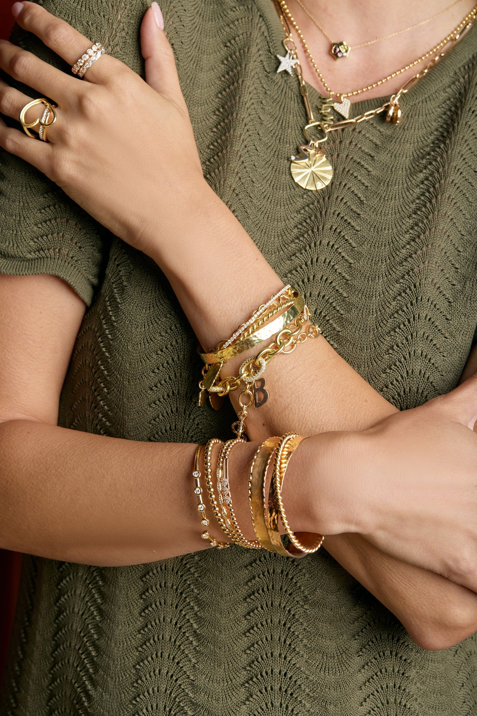 18kt yellow gold hammered cuff.