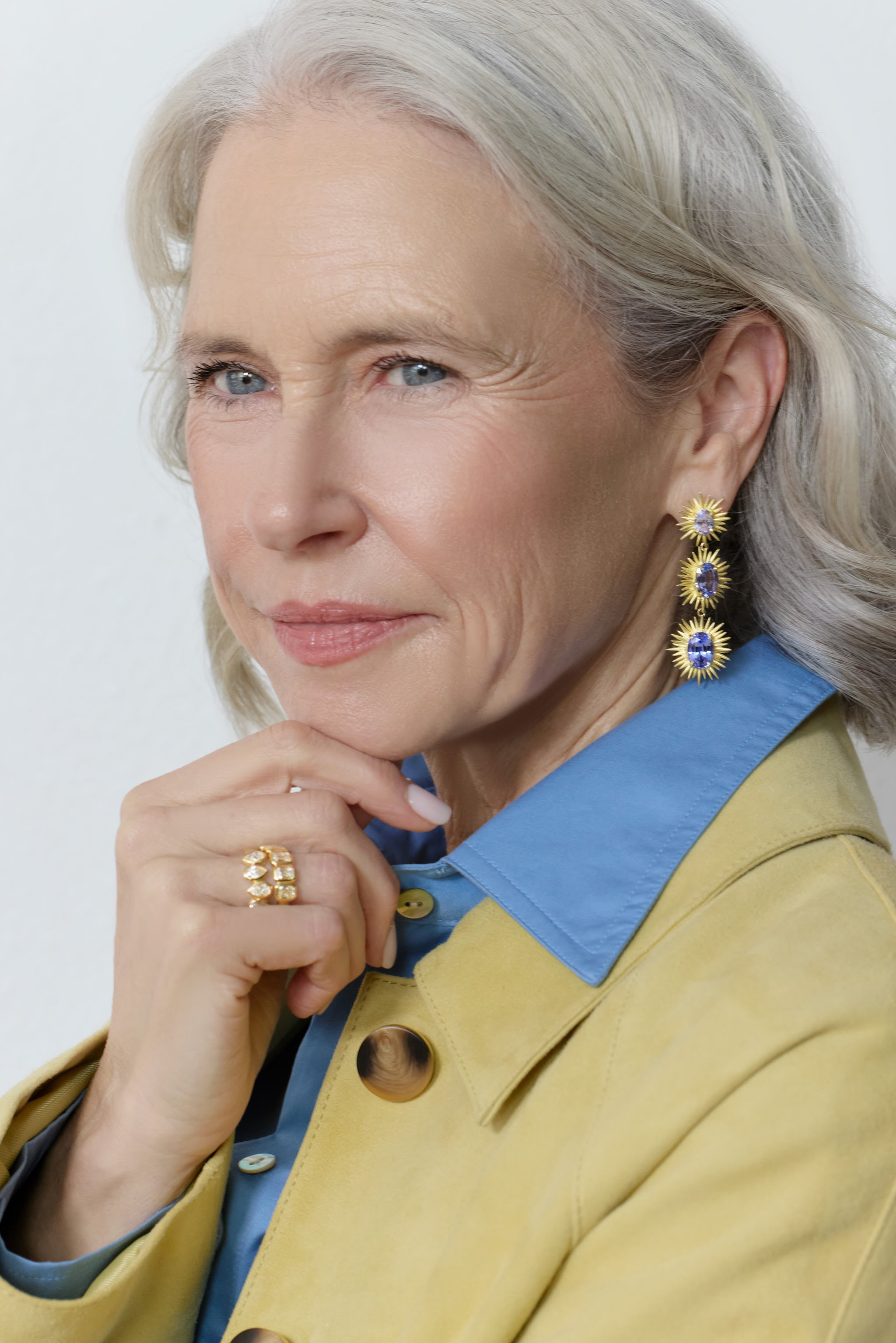 18kt yellow gold Triple Spike drops with 3 pairs of oval tanzanite's. The tanzanite pairs weigh 6.87cts, 4.72cts and 2.34cts.