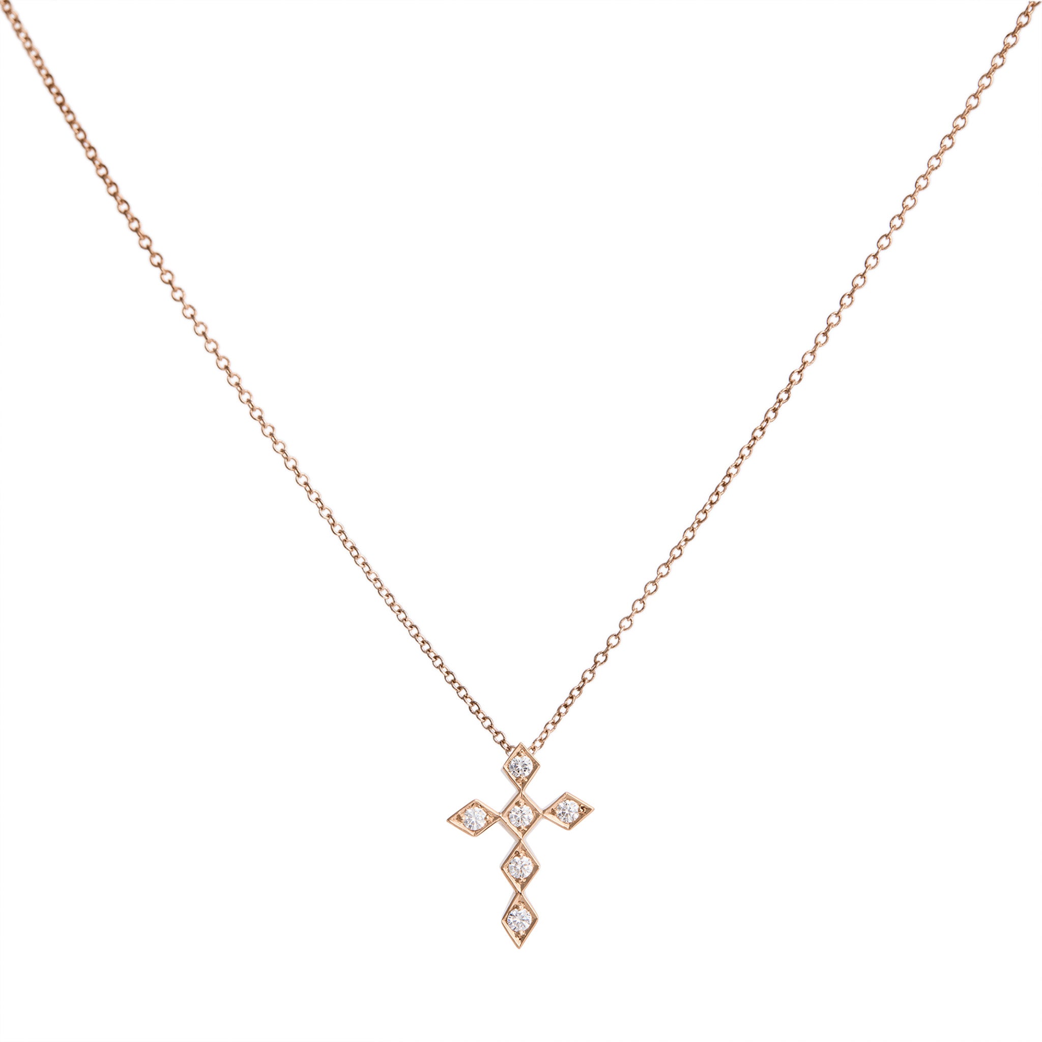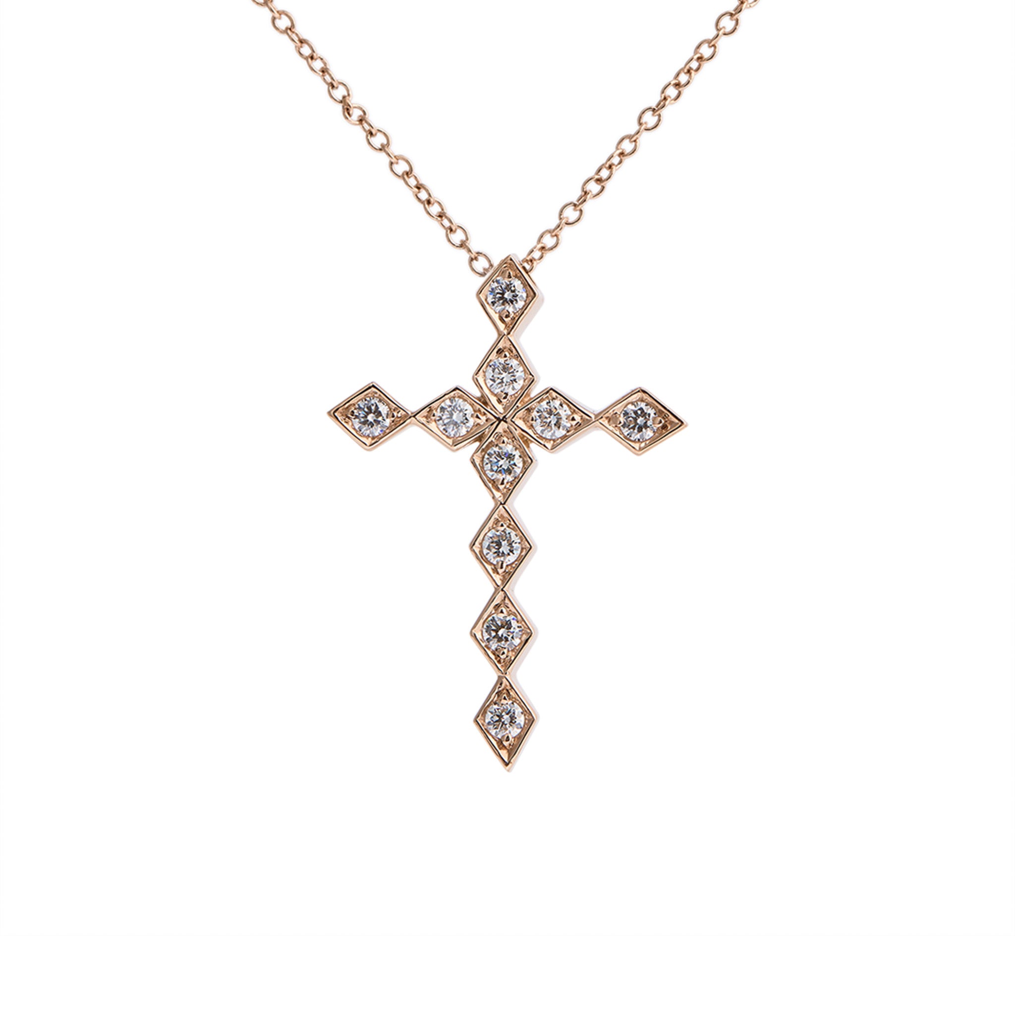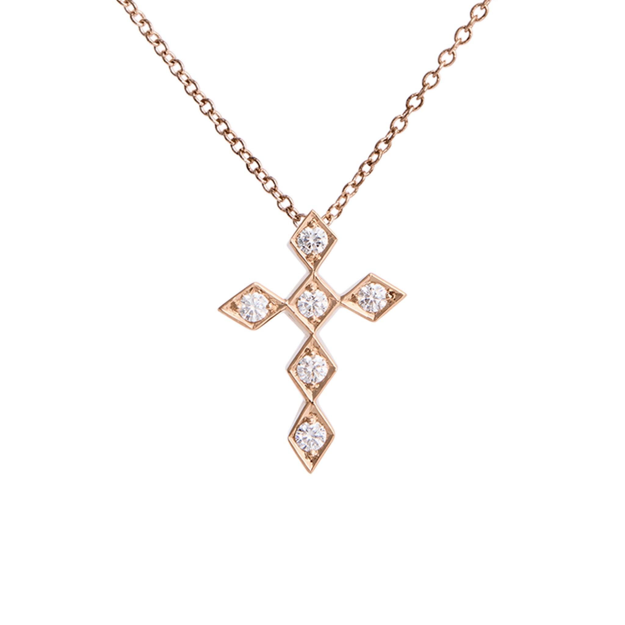 18kt Romeo cross set with diamonds on a pendant chain. Available in 18kt yellow, rose and white gold.