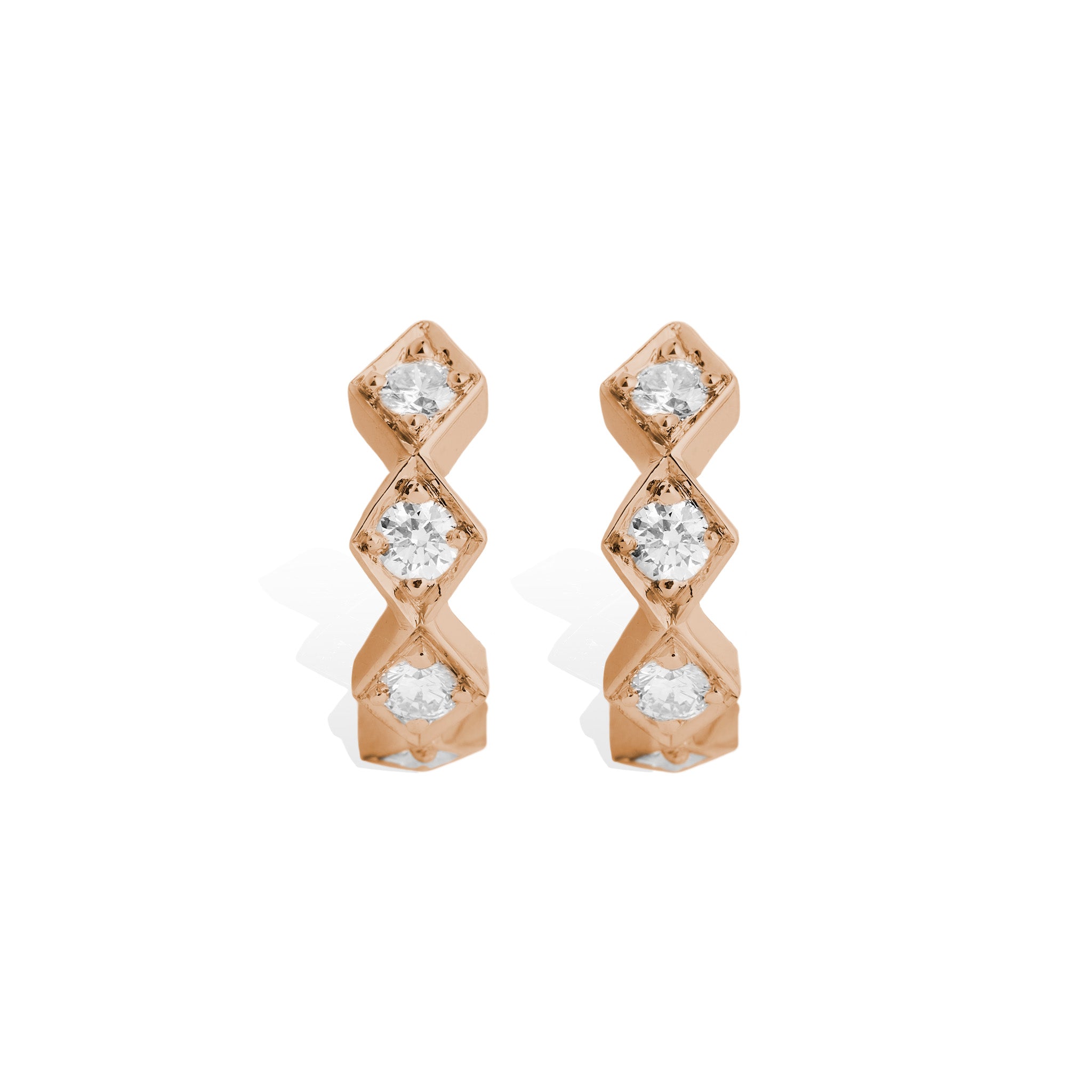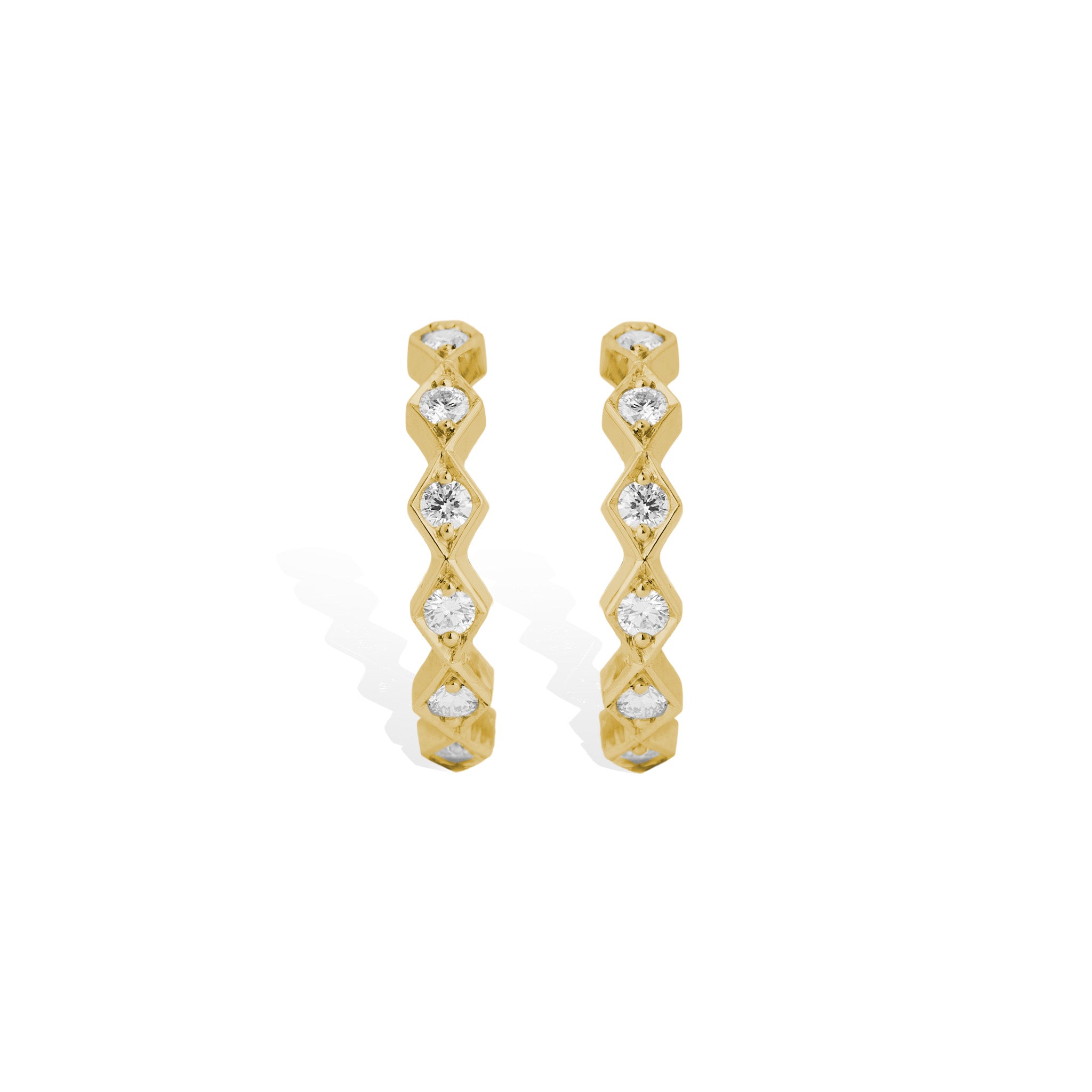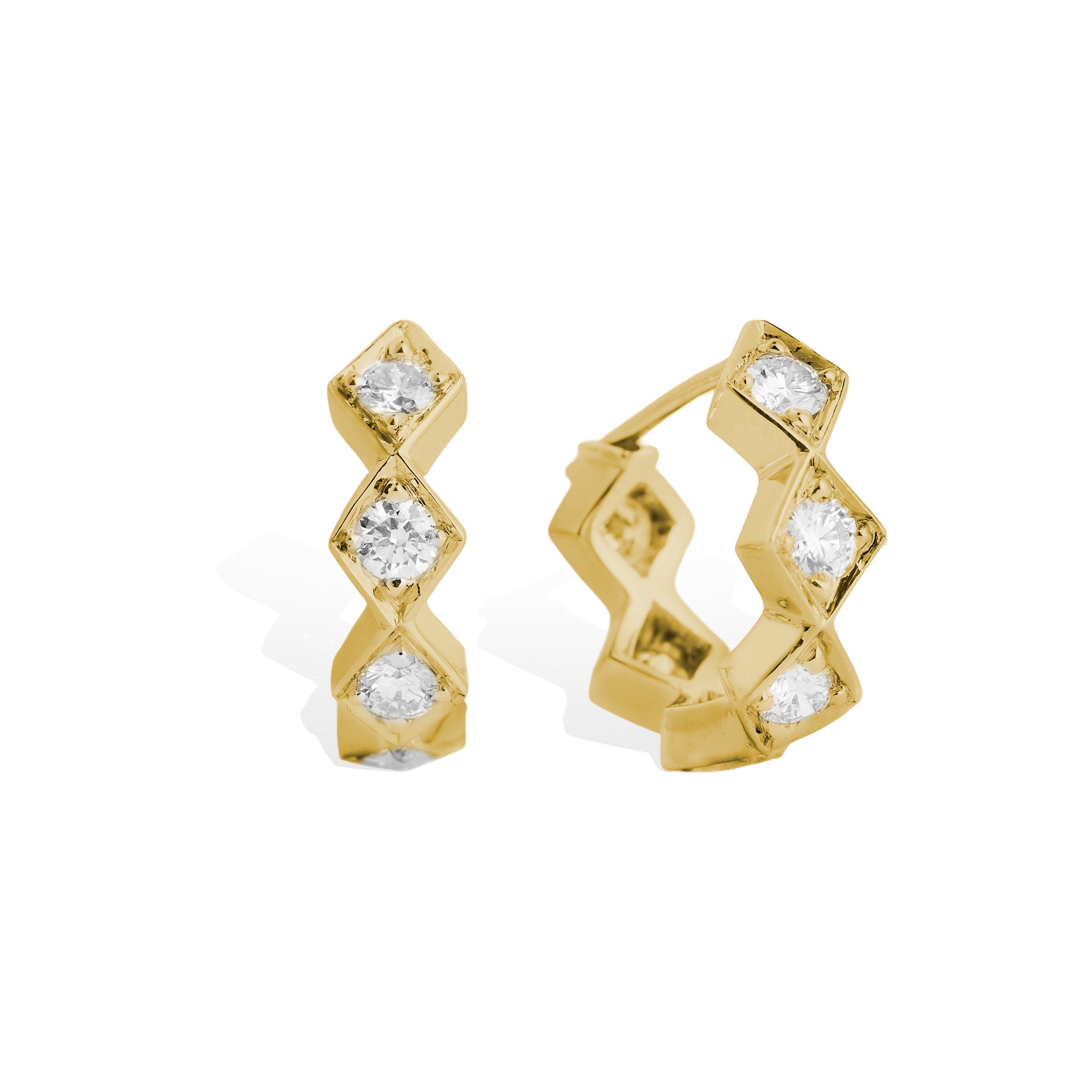 Signature Romeo hoops set with diamonds and a hinged snap closure. Available in 18kt yellow, rose and white gold.