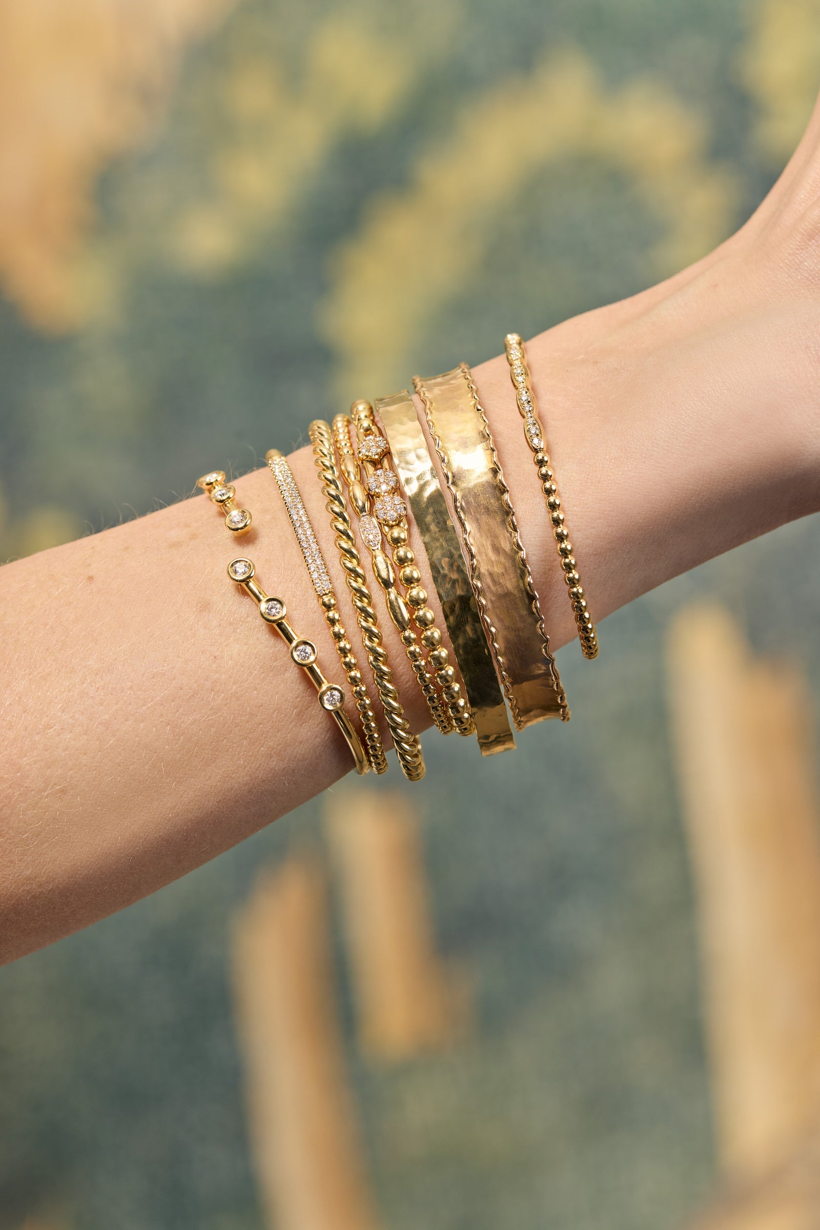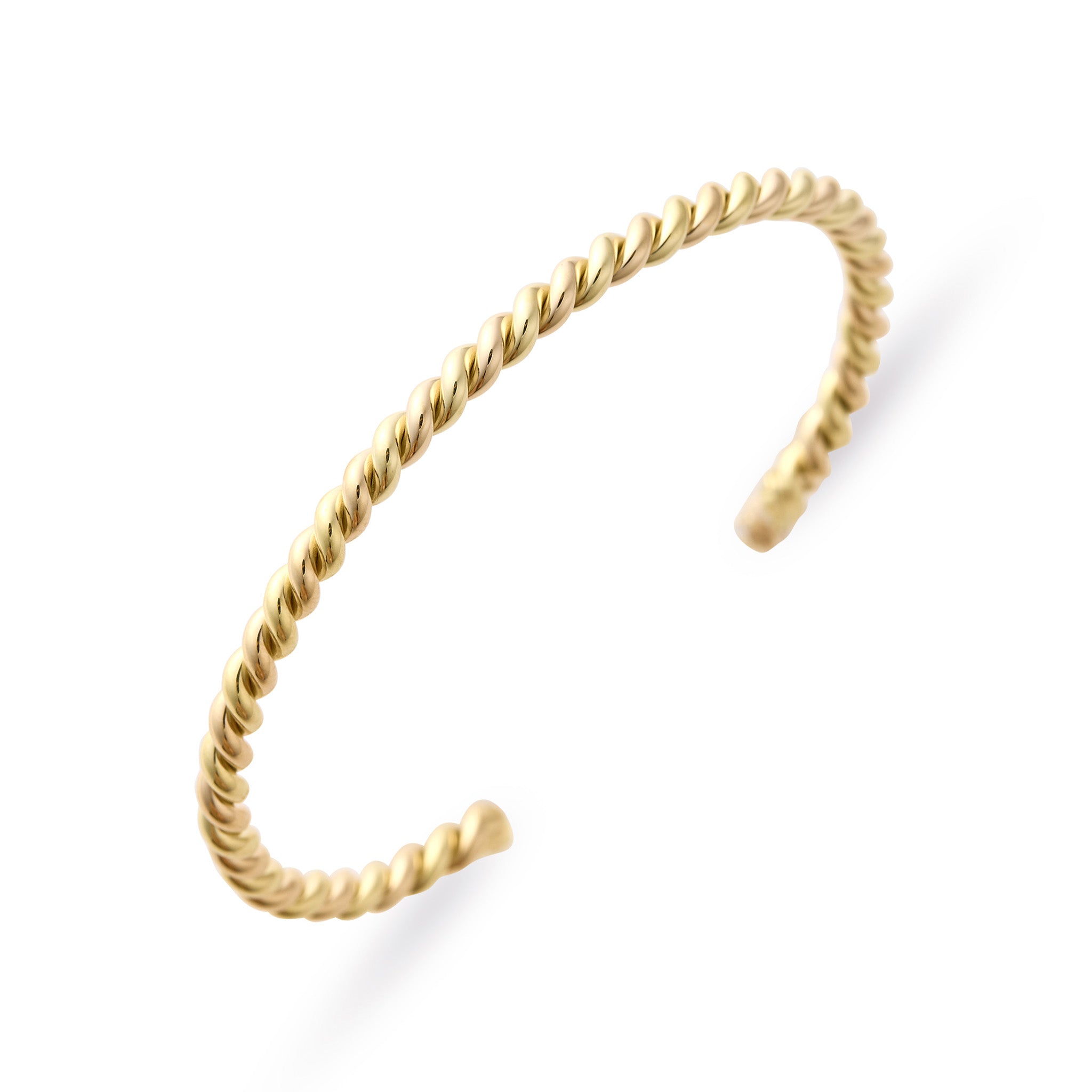 Hand twisted wire cuff. Available in 18kt yellow gold, rose gold and two tone.